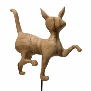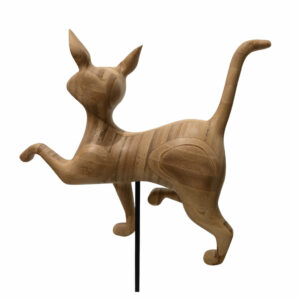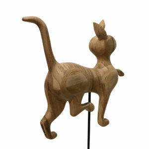 Plein de caractère, ce chat en bois de bambou swingue avec une attitude qui lui est propre, capturant avec élégance et légèreté toute la grâce féline en mouvement.