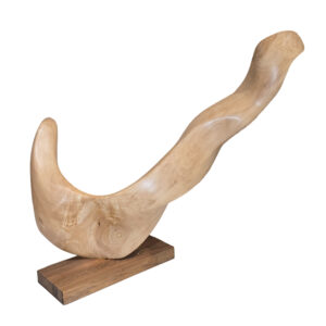 Le bois d’acacia, dense et nerveux, épouse cette histoire. Le bec se tord, se dévie, comme si la matière elle-même avait résisté, puis cédé. La trajectoire n’est plus rectiligne : elle hésite, bifurque, s’infléchit sous le poids du vécu. L’oiseau tient pourtant debout, dans un équilibre précaire, suspendu à une logique invisible de compensations et de contrepoids.