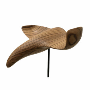 Gracieuse et envoûtante, cette sculpture de raie en bois de zébrano semble voler et danser dans l’eau, capturant avec élégance le mouvement fluide et la beauté naturelle des fonds marins.